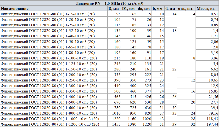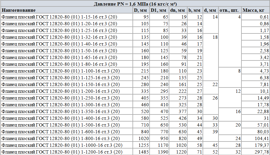 Плоские стальные фланцы, изготовленные с соблюдением всех требований ГОСТ 12820, обладают следующими параметрами: