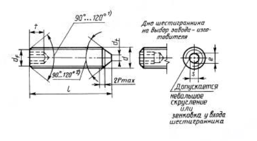 Винт установочный с плоским концом и шестигранным углублением "под ключ", класс точности А и В ГОСТ 11074-93.